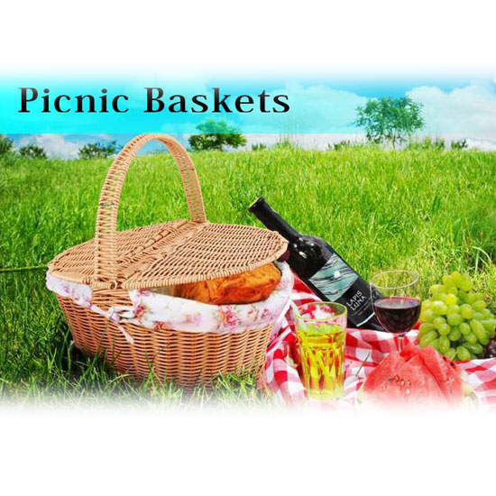 This is a basket suitable for picnic use. It features a large compartment, two covers and a durable handle. This basket is available in different sizes for your selection.