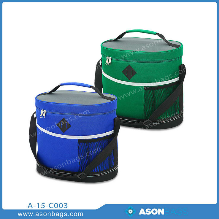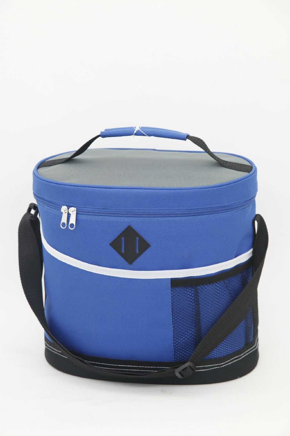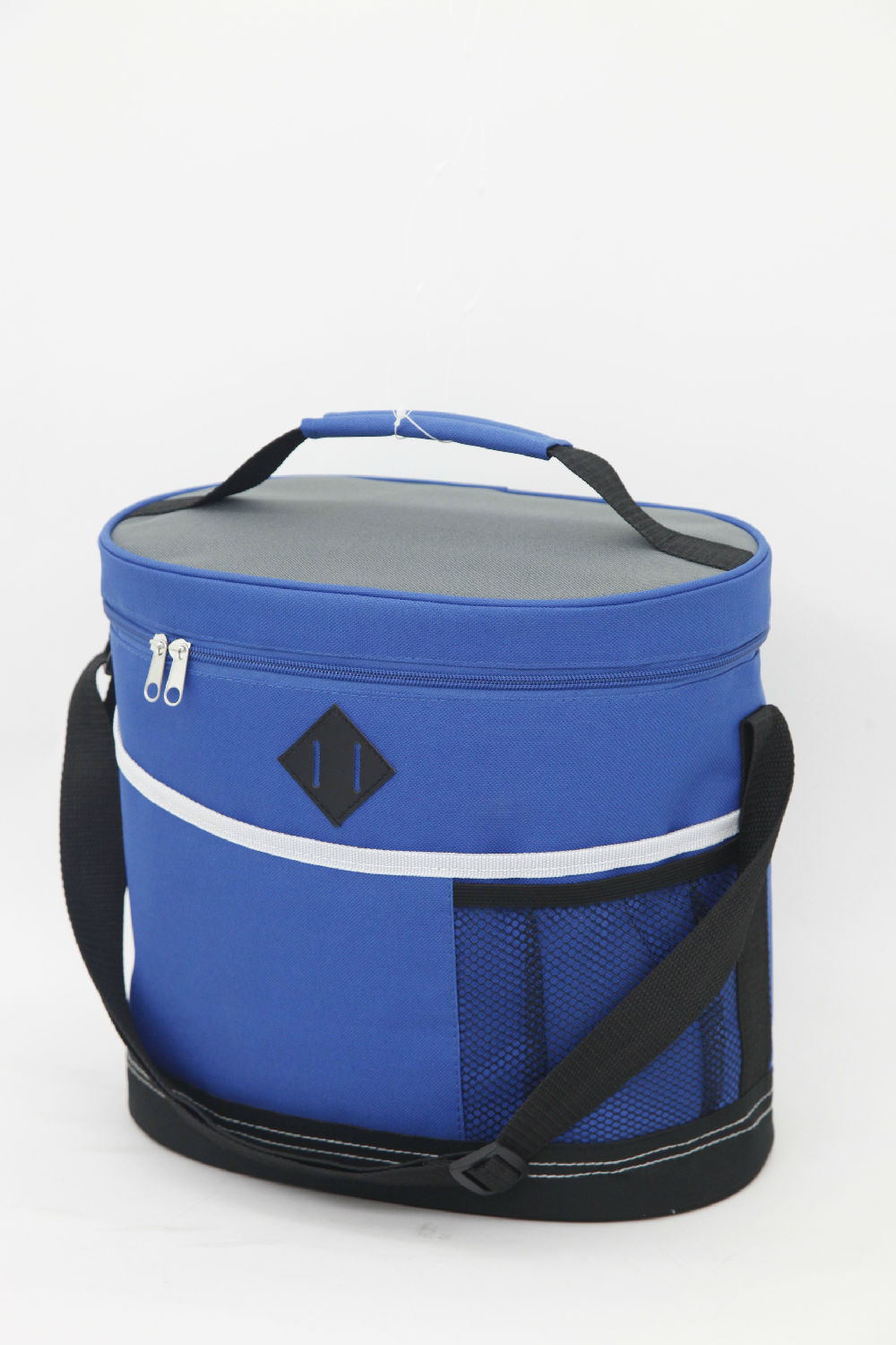 This bucket-style cooler bag underlines an elliptical silhouette which is a perfect fit for placing bottles and cans. The versatile design sports one top handle for a quick grab while allowing users to put the hefty bag on shoulders with its adjustable shoulder strap.