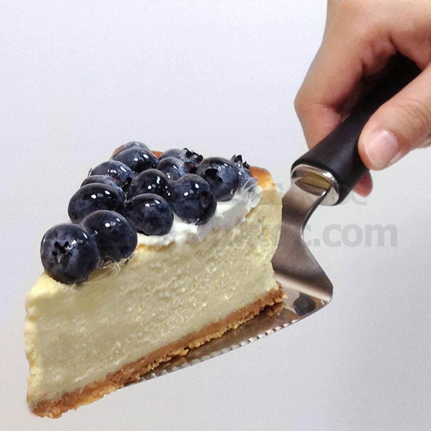 Cut and serve the pastries without a mess using this pie server. For safety and convenience, this pie server is designed with a classic triangular blade with serrated edge and a contoured, slip-proof handle that ensures you can slice and pick up even soft and fluffy cake easily. Useful for serving anything from pizzas, to cakes and pies, this is a must-have for kitchens, cafes, bakeries, and home.