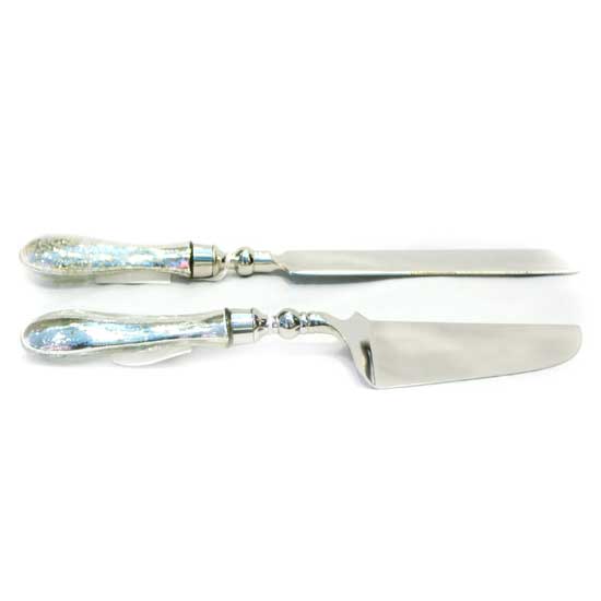 Featured here is a pie-serving set in quality stainless steel construction. The alluring glass handles offer distinction and individuality. This pie-serving set is sure to captivate the attention of your guests.