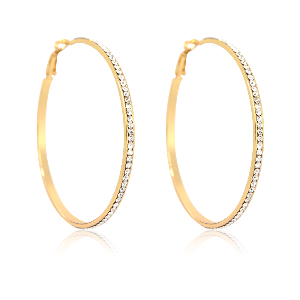 ​Rhinestone at outer Side, Unique Design, Classic and Trendy Hoop Earrings for Women and Girls. For the woman that loves things glittery; these Pierced Large Hoop Earrings with Rhinestone add sparkle to a casual setting or completes a formal look.