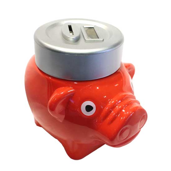 This glossy piggy bank features a pink pig shaped design for an eye-catching look. It is durably made to promise long time service. This interesting piggy bank is great as a gift for friends.