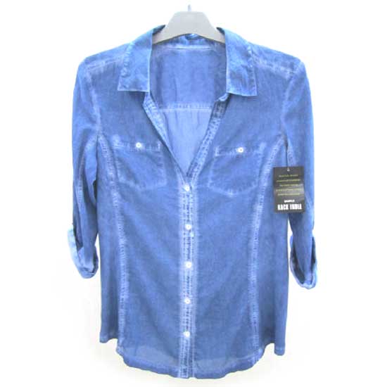 This casual cotton shirt is dyed by blue pigment. The classic shirt features a spread collar and 3/4 length sleeves. The two chest pockets and front button closure complete the design of the piece.