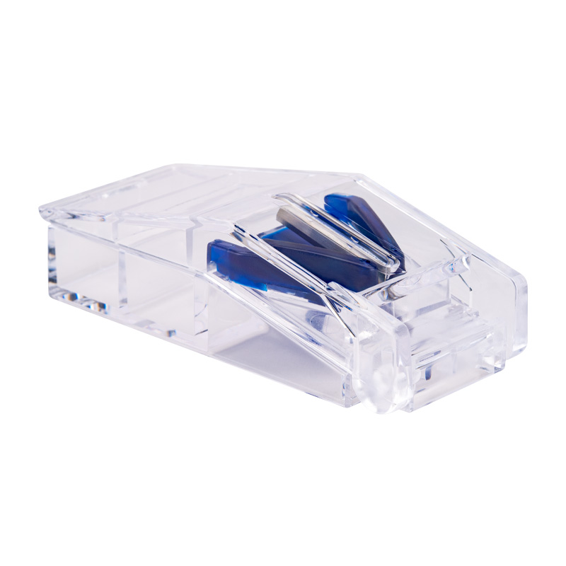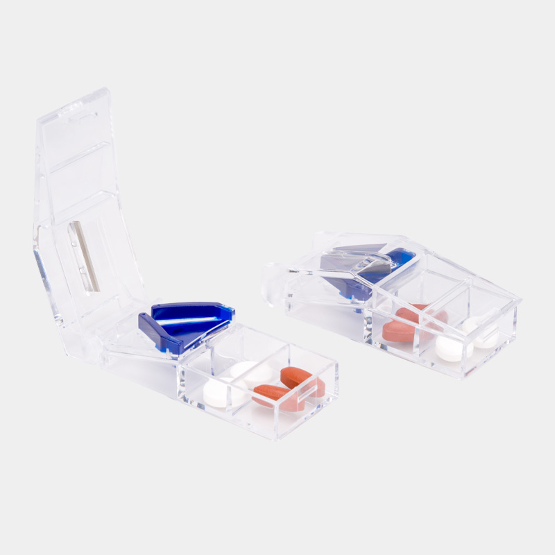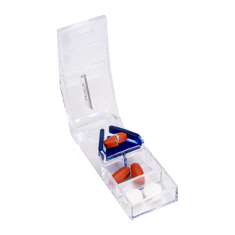 Small and compact device designed to help you cut pills or tablets into smaller pieces for easier swallowing. It is made of high-quality plastic material and features a sharp stainless steel blade that can easily cut through pills of various sizes and shapes. Its compact size and lightweight design make it easy to carry in your purse, pocket, or travel bag.