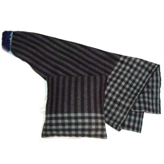 The pillow and blanket feature stripe and checked patterns. They are delicately woven with skilled workmanship. The pillow and blanket make excellent household textile items.