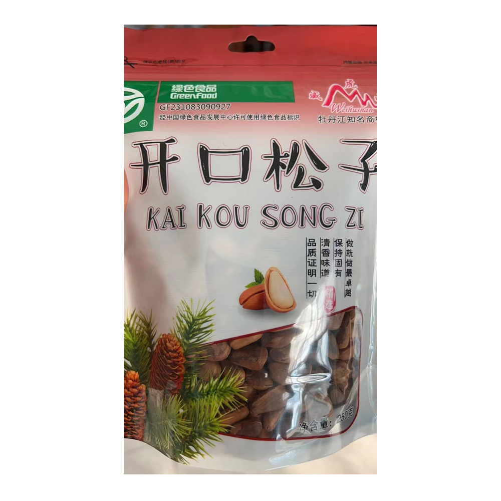 Pine nuts come from the big forest. With high-quality technology and raw materials, you can taste the excellent taste of open-mouthed pine nuts. The Weihushan brand open-mouthed pine nuts have undergone strict quality control, layer by layer inspection, strict machine screening, and manual selection of empty shells and bad fruits, all of which are top-notch products. Let you taste fuller, more fragrant, and high-quality pine nuts.