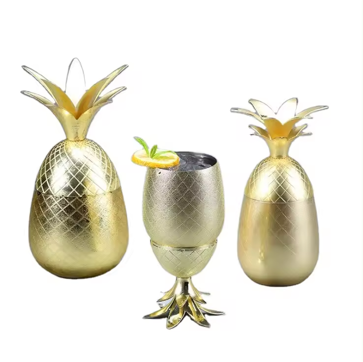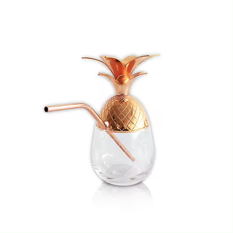 Hoffee Hot Selling 16oz Pineapple Shape Moscow Mule Mug Tumbler With Copper Straw