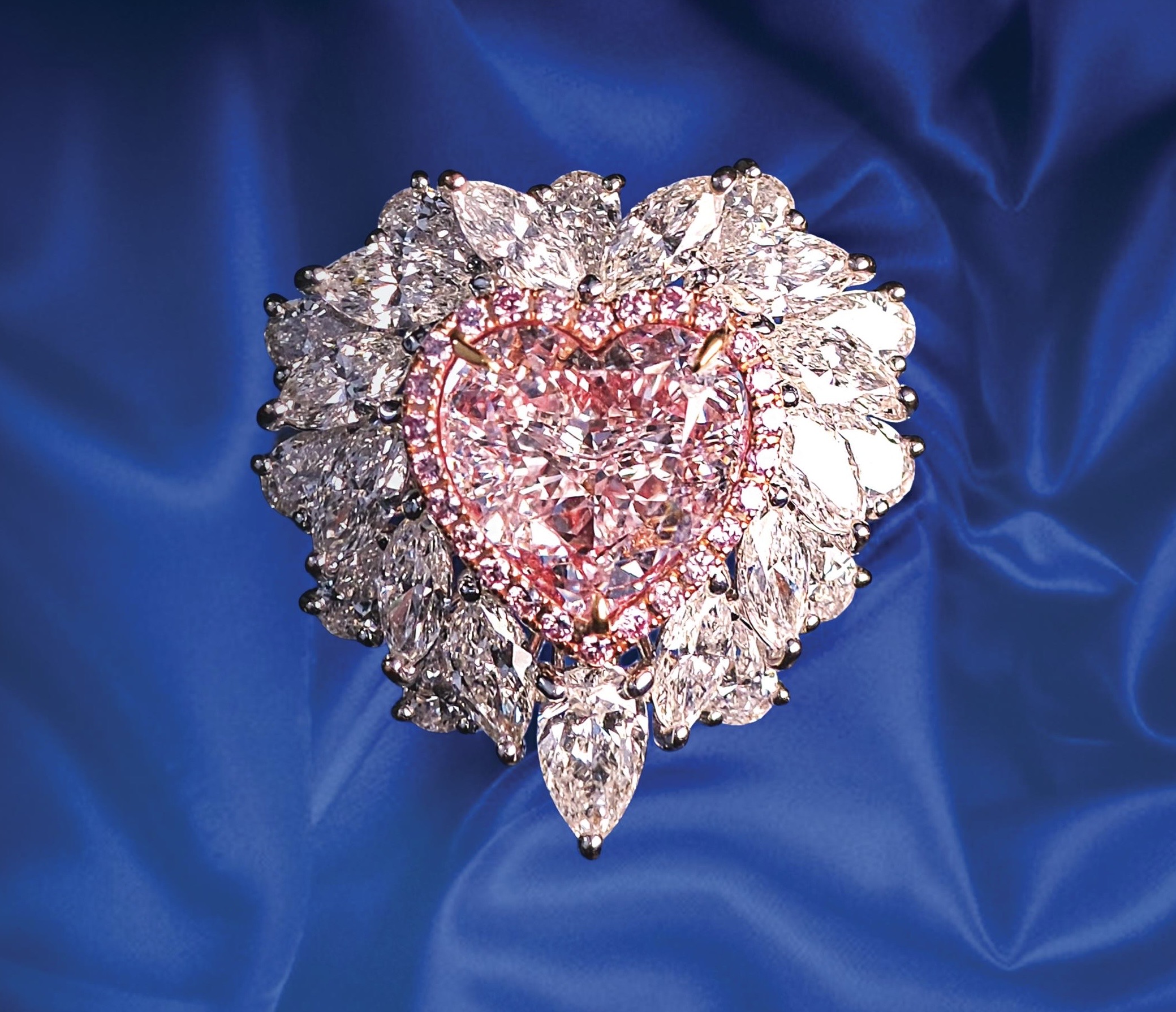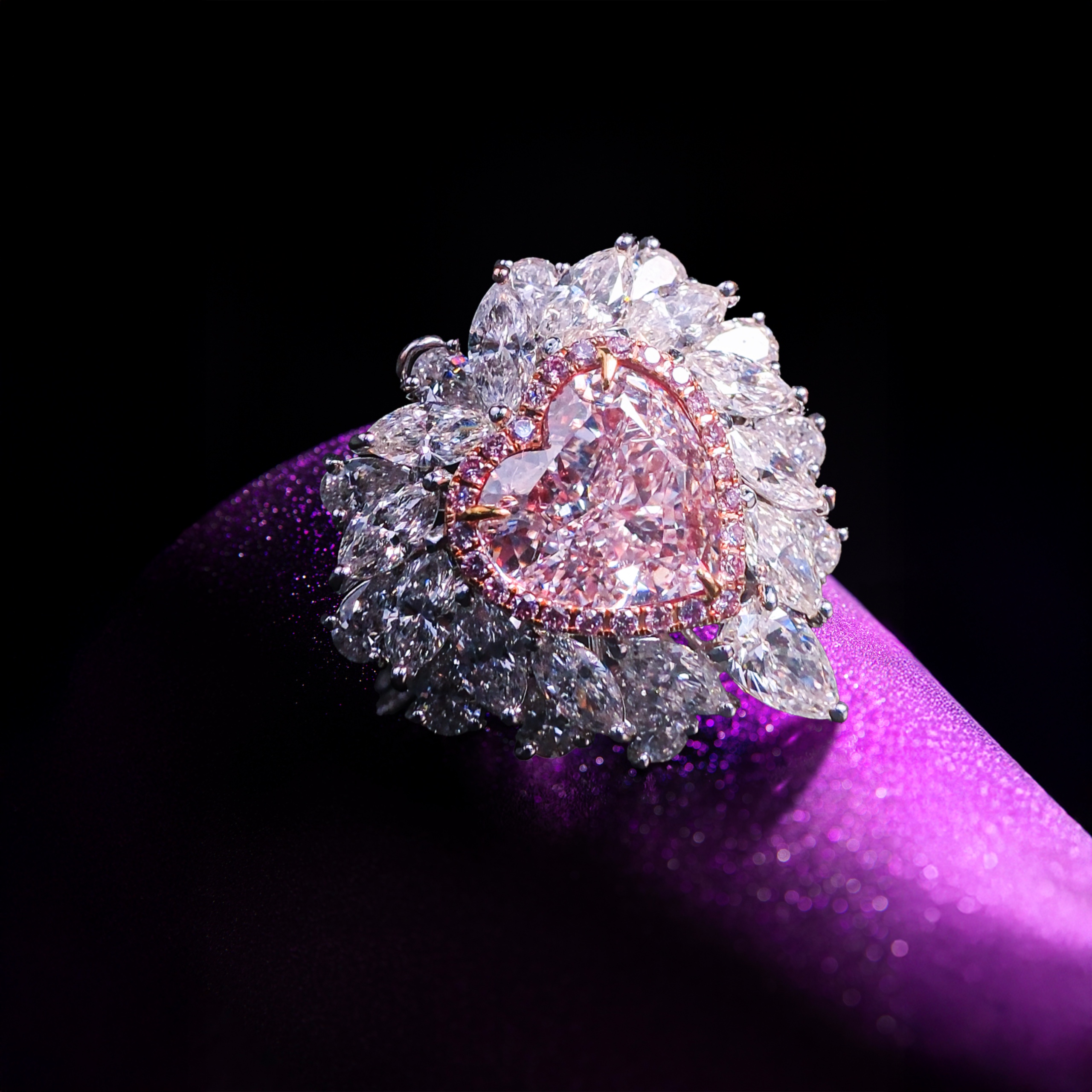 Stunning 3.03CT GIA certified heart-shaped pink diamond surrounded by brilliant white diamonds 18K Gold.