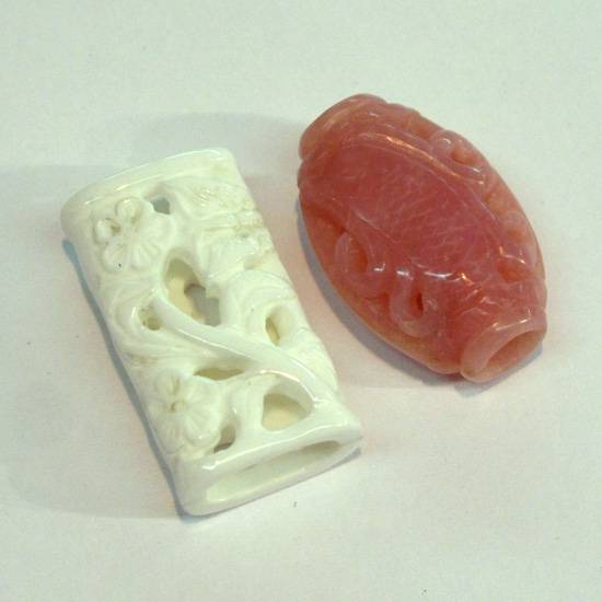 These carvings are made out of pink opal and shell. They are in an oriental antique style caving. Suitable for making any kinds of jewellery use.