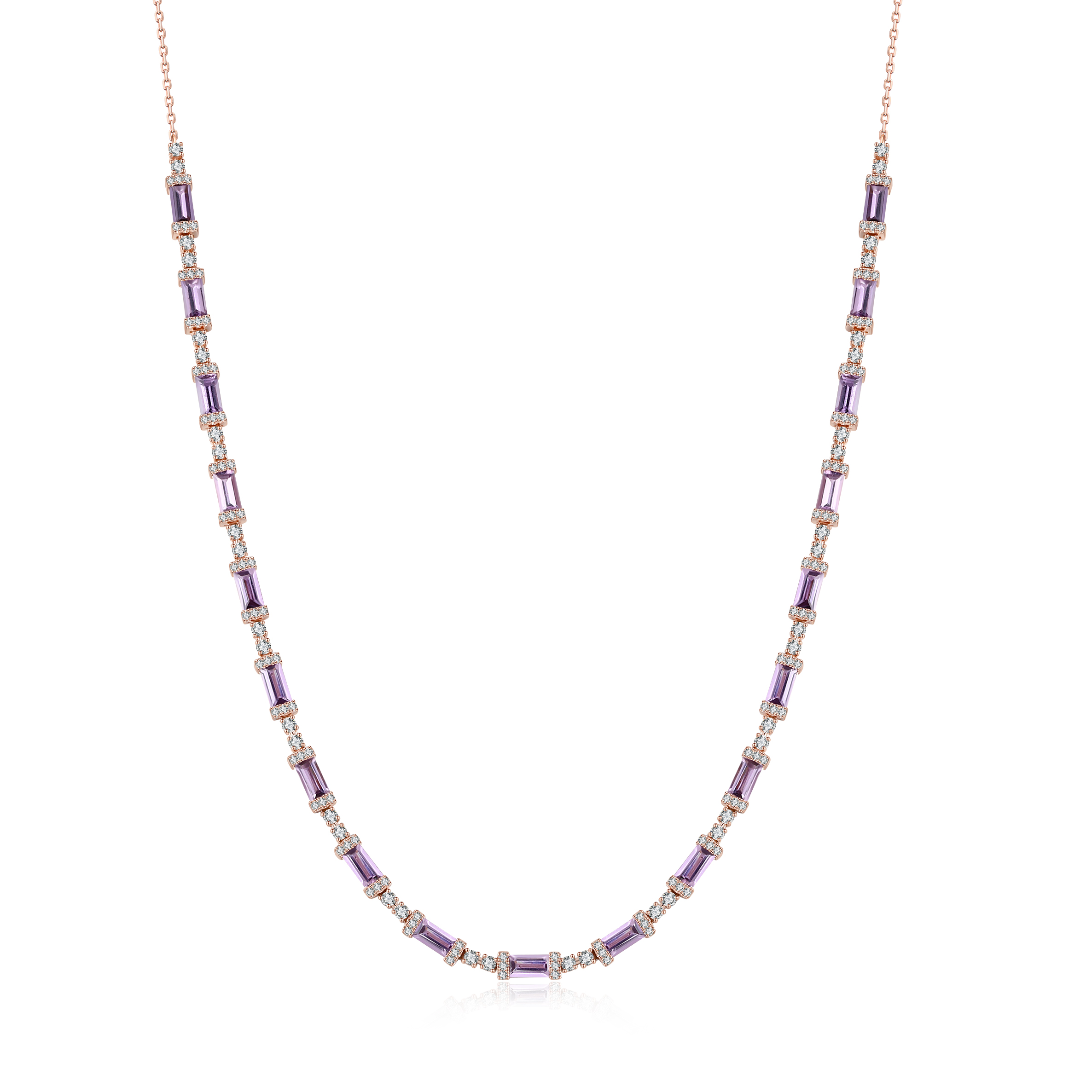• Natural Baguette Pink Sapphire and Diamond in 18K Rose Gold.