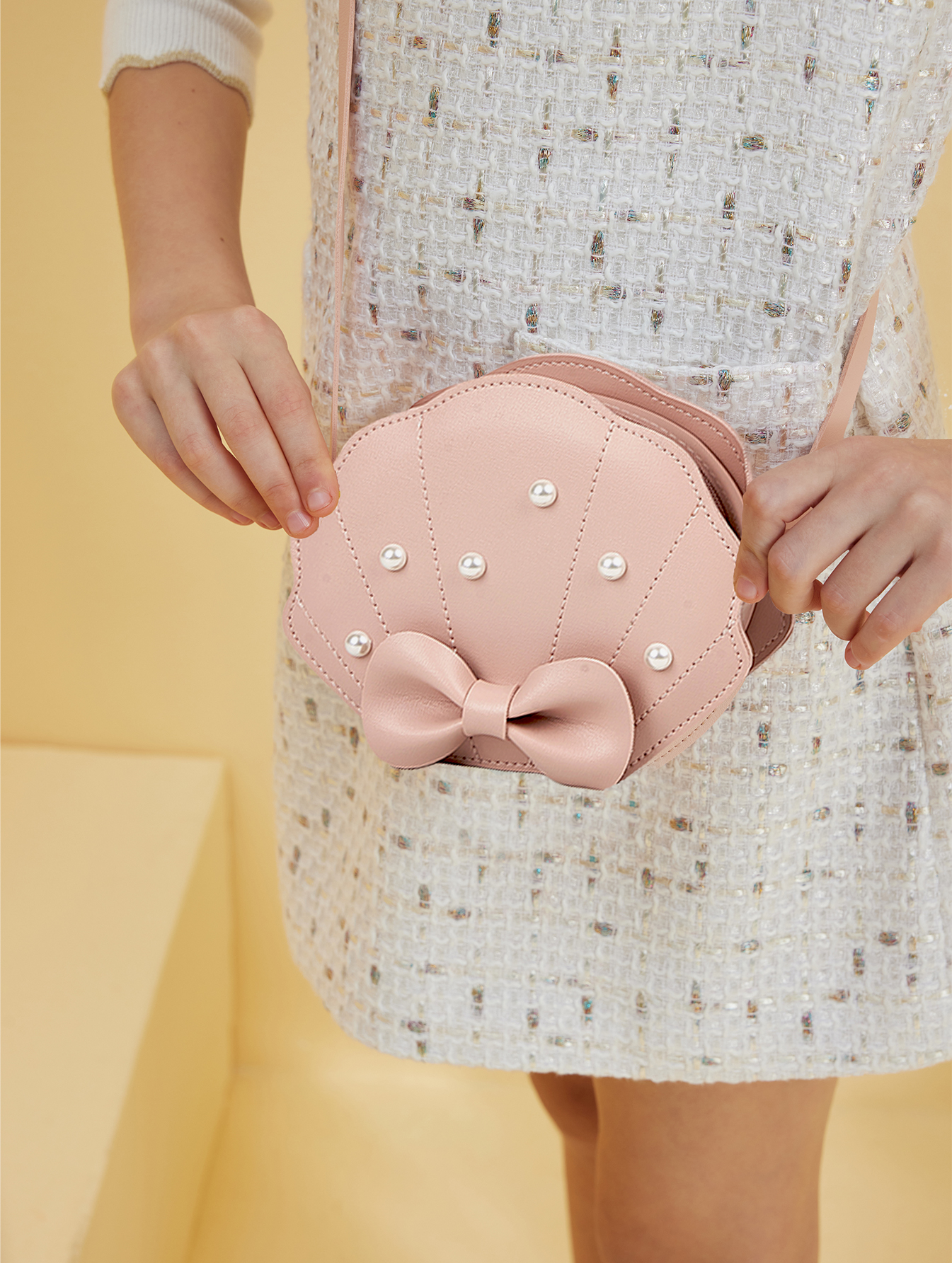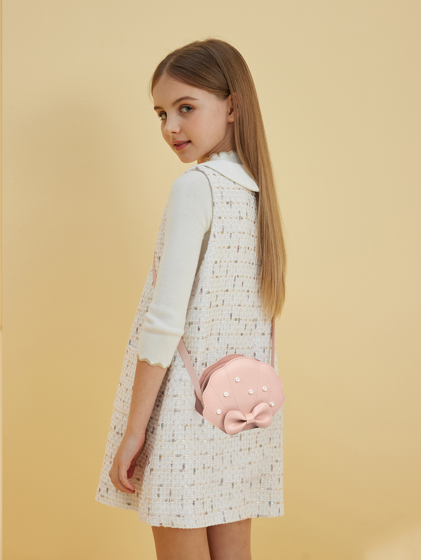 This children's pink beaded shell bag is a fun, beautiful and practical fashionaccessory that can not only decorate children's lives, but also accompany themas they grow up with a sweet memory and unique symbol.