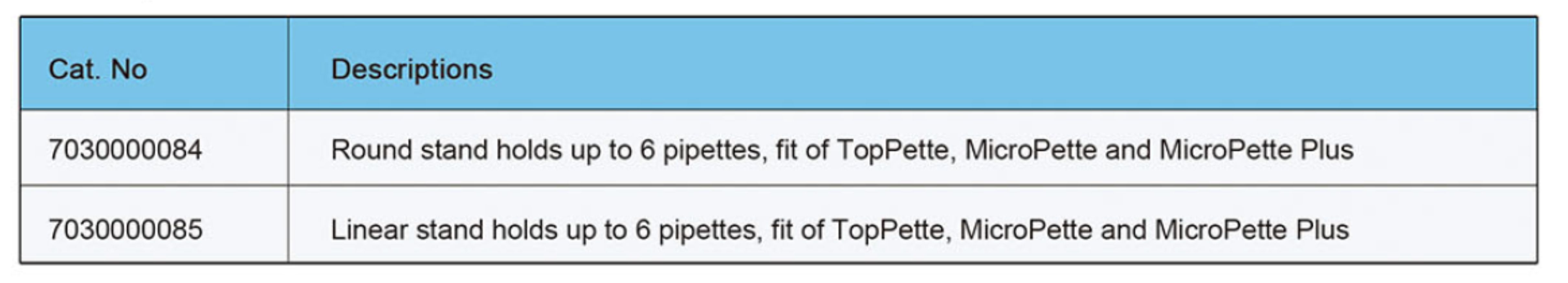 The kinear stand can be applied to the three major pipette series-TopPette, MircoPette and MicroPette Plus.