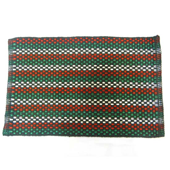 This pictured rug is loomed in alternating red, green and white. The rug is made with a composition of rayon and cotton for a quality and comfortable touch. This mat makes a nice addition to your home décor.