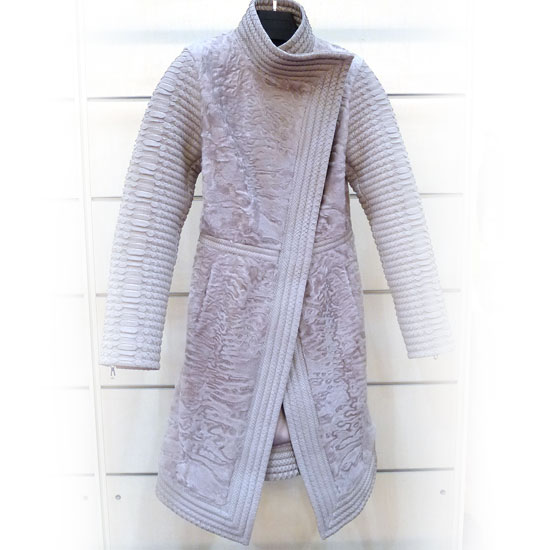 This is a high-quality piton jacket with a fashionable design. It is made of quality baby lamb leather for an elegant touch. This long-sleeved jacket is finely crafted with delicate patterns for extra style.