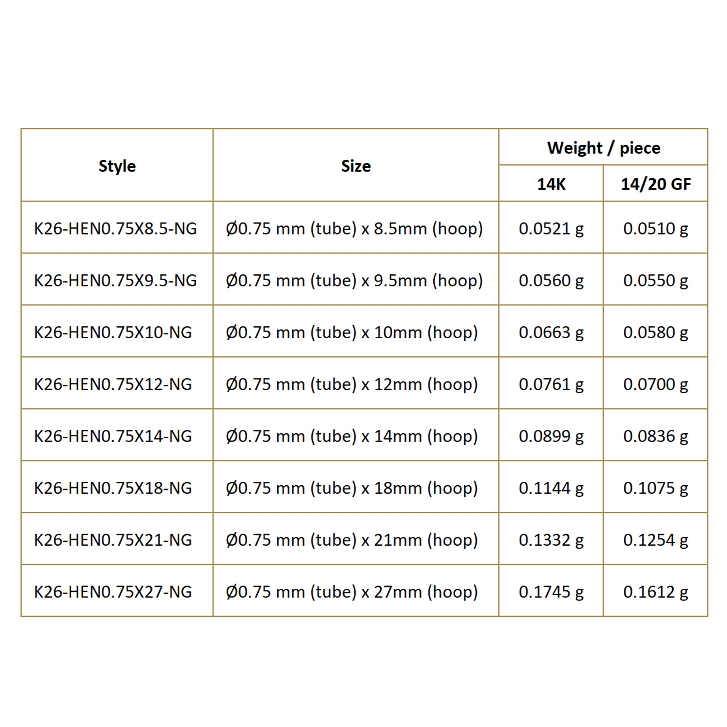 K26-HEN0.75X<Hoop size>-NG Hoop size : 8.5 / 9.5 / 10 / 12 / 14 / 18 / 21 / 27