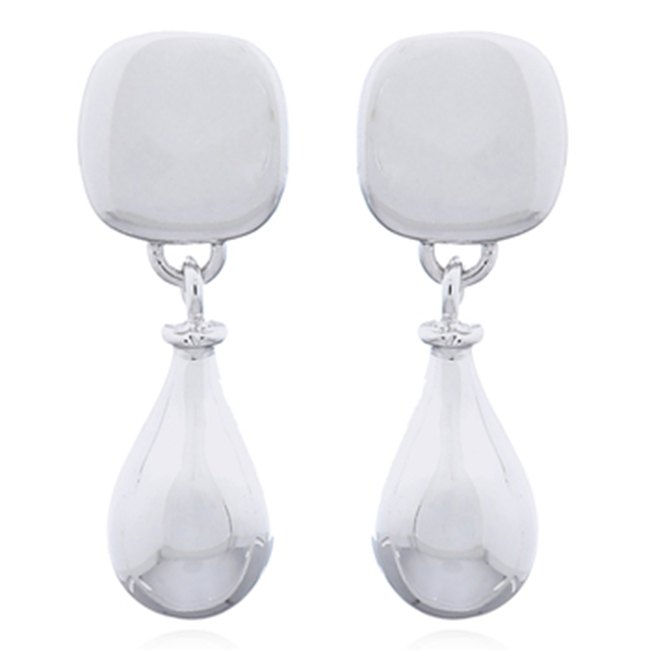Plain Silver Solid Tear Drop Square Stud Earrings