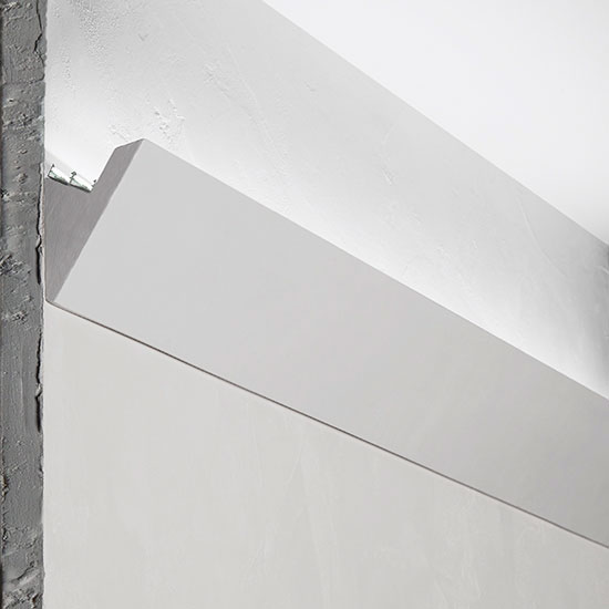 • Plaster structure including two aluminum profiles for mounting LED strips.