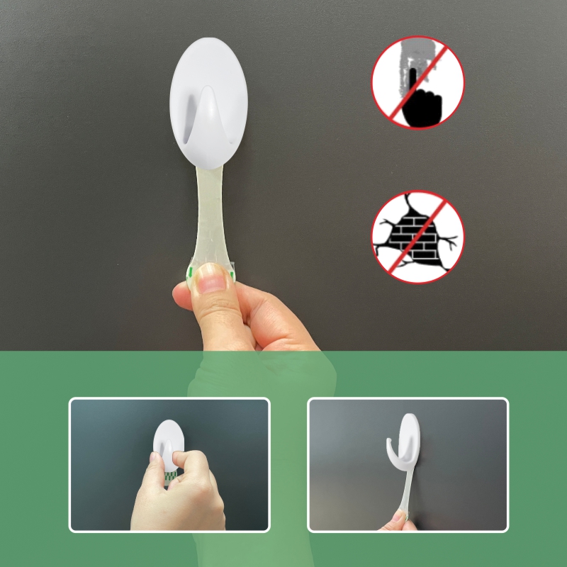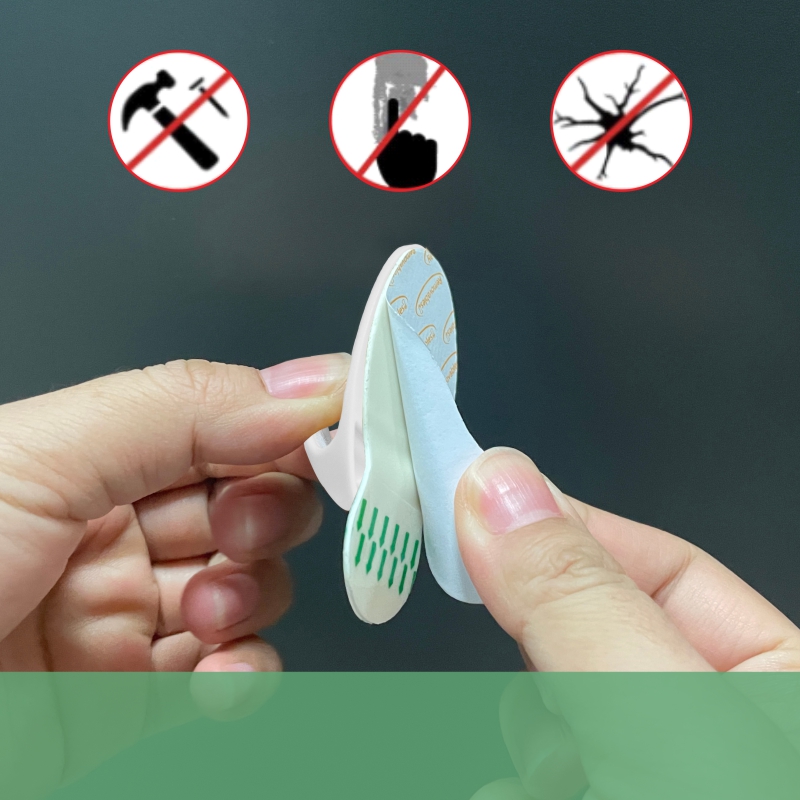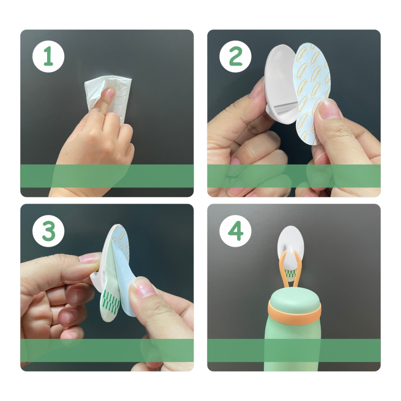 * Carefully peel the adhesive tape from the hook.(avoid touching the adhesive)