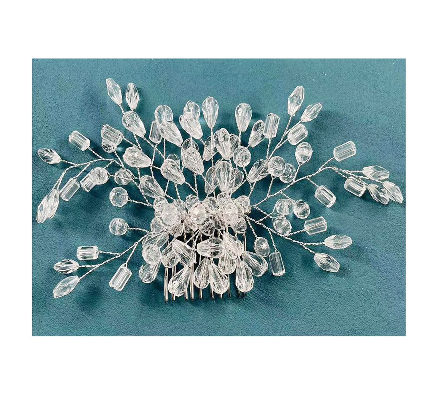 As shown is a high-fashion plastic bead style silver plated alloy parts lady hair comb.