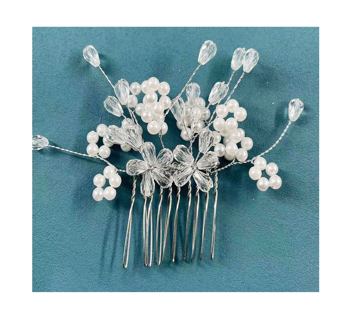 As shown is a high-fashion plastic bead style silver plated steel parts lady hair comb.