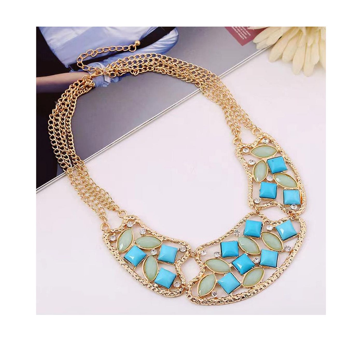 As shown is a high-fashion alloy parts jewelry plastic beads necklace.