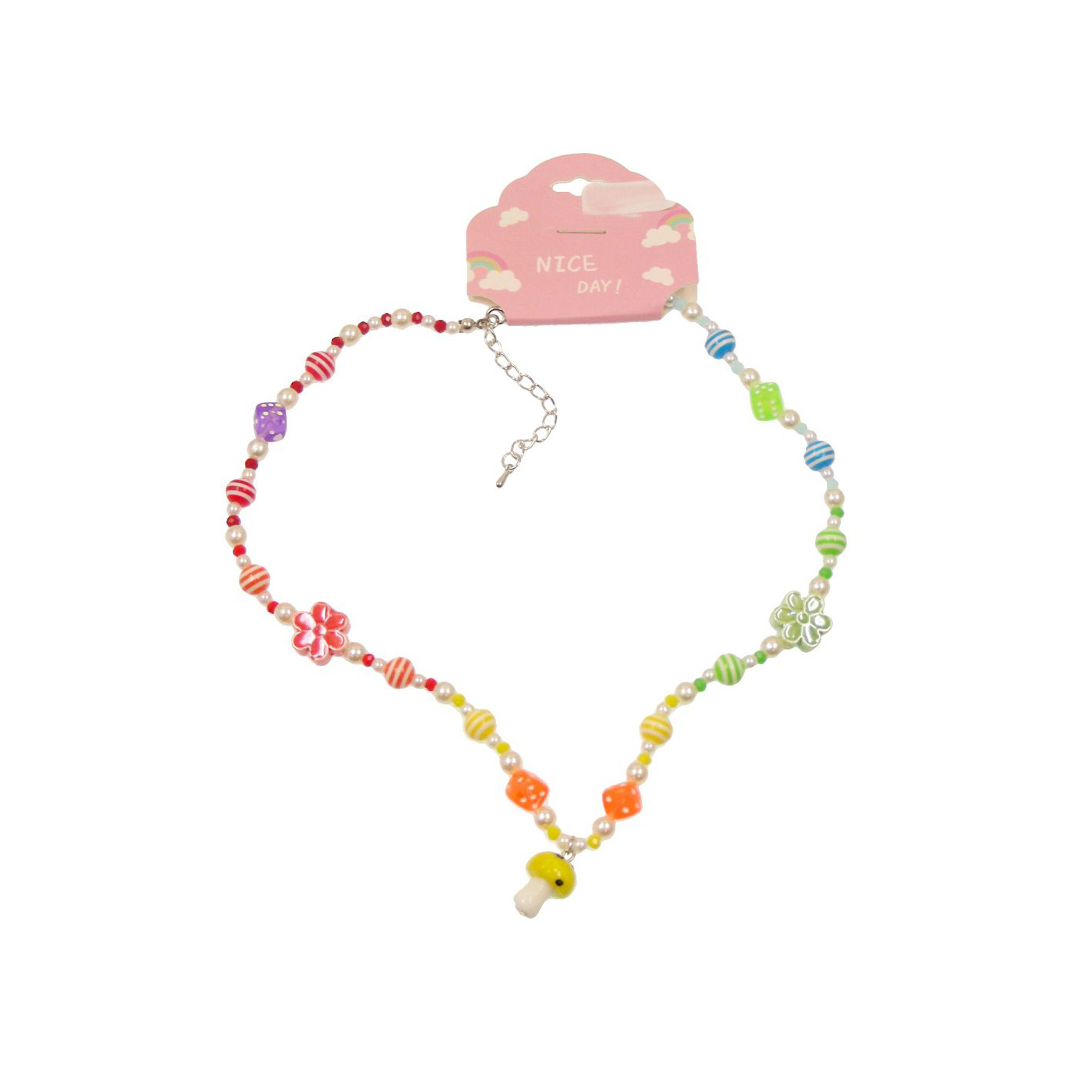 As shown is a high-fashion alloy parts jewelry plastic beads necklace for girl.