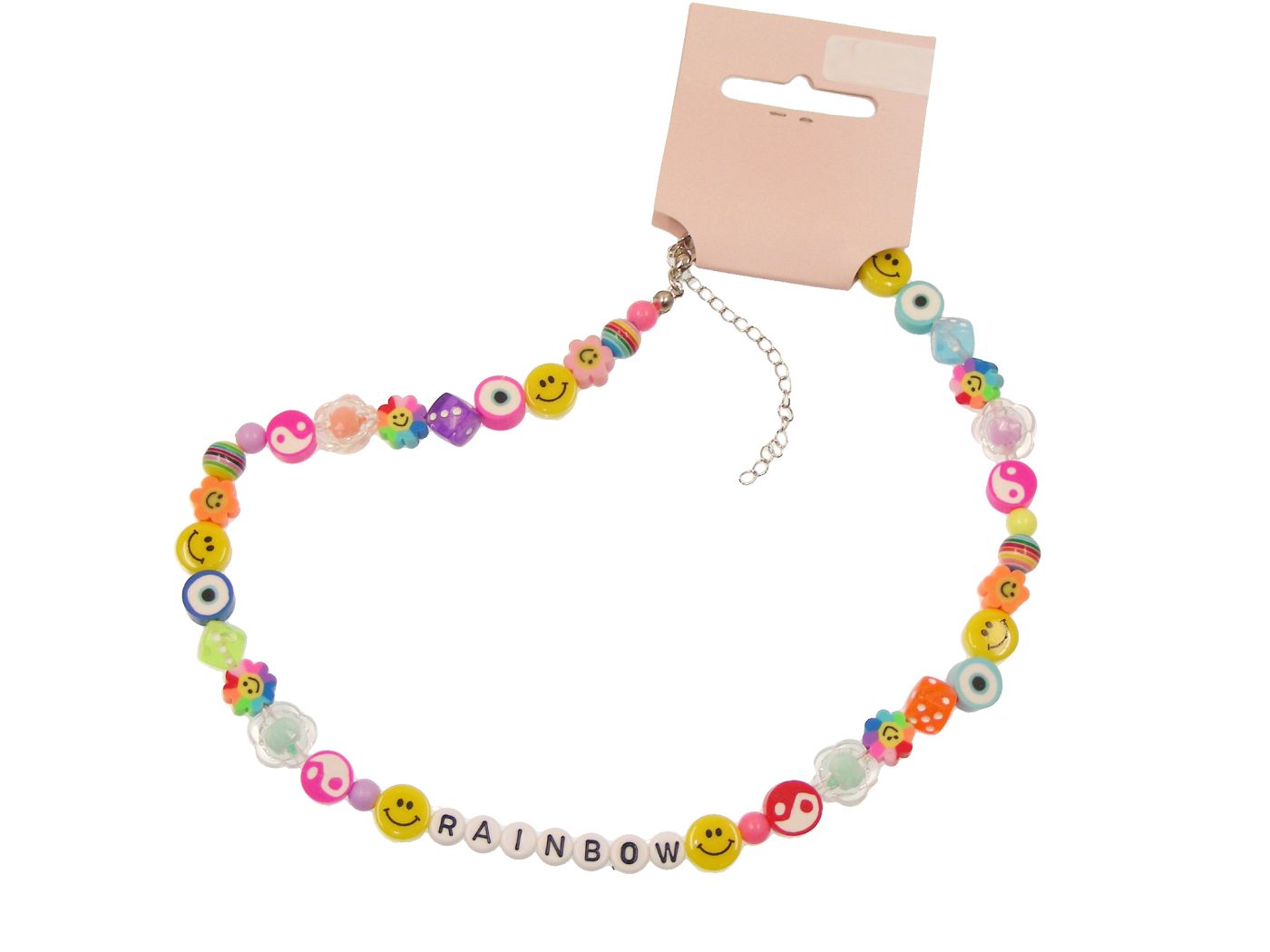 As shown is a high-fashion alloy parts jewelry plastic beads necklace for girl.