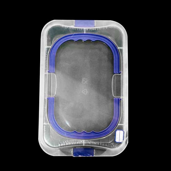 This plastic box features a clear body with two purple handles. The plastic box is ideal for organize and store sundry items. The quality plastic box is unbreakable and wear resistant.