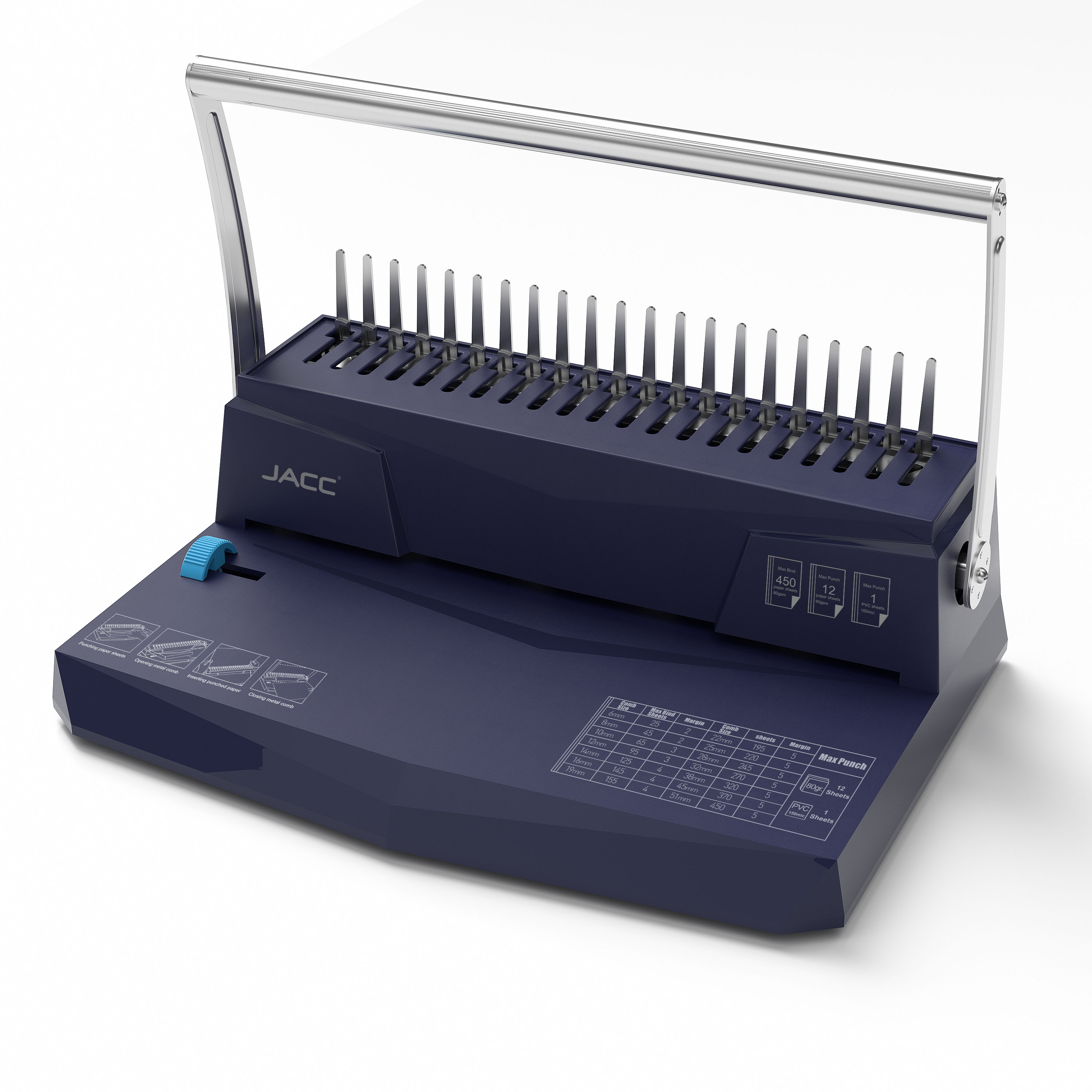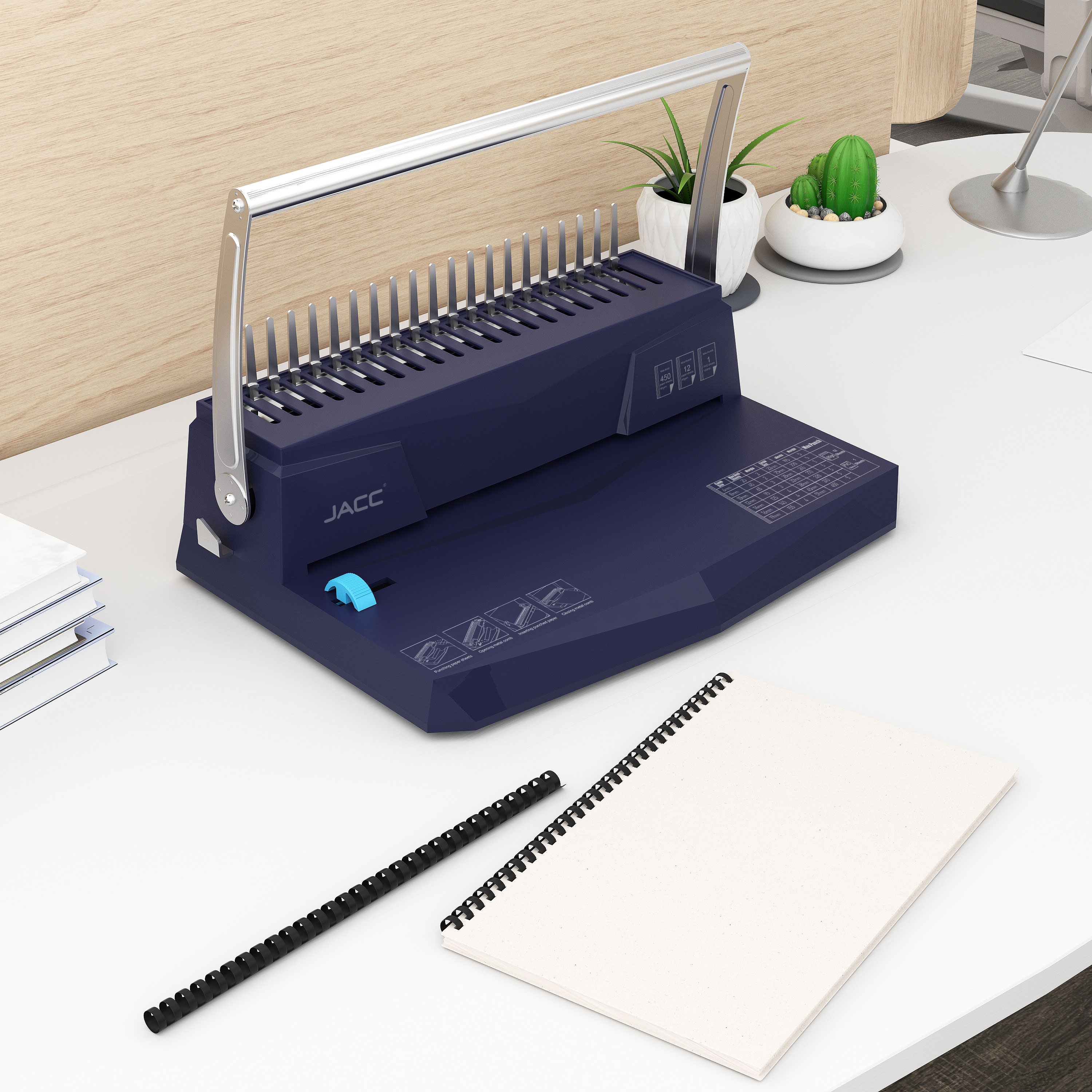Promote a streamlined and sustainable operation with this innovative manual comb binding machine. Specially designed for office use, this user-friendly manual system makes high-quality binding convenient, efficient and completely eco-friendly without electricity required. Minimize clutter and keep documents organized, secure and presentation-ready with this desktop manual comb binding machine and comb binder.