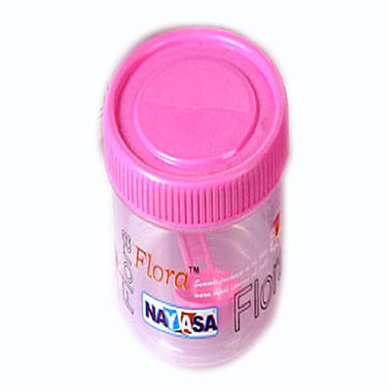 This cylindrical container is well manufactured with a twist-off lid for a secure closure. The see-through design allows you to identify the contents inside with ease. The floral prints around bring a fancy touch to its appearance.