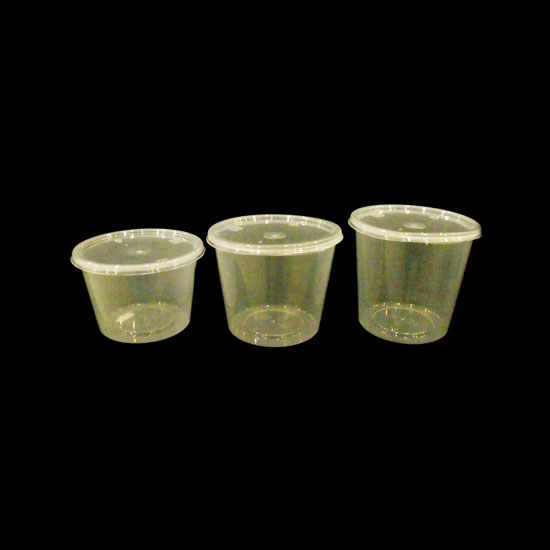 This is a plastic container for food. In a round shape, this container comes with a lid for tight sealing. This high quality plastic container is a good choice for catering businesses.