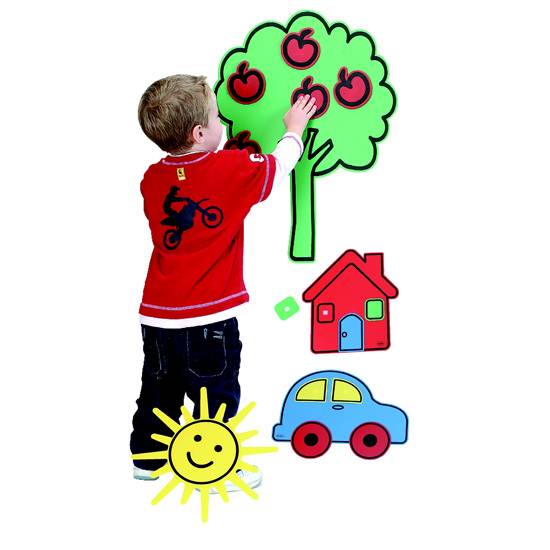 - A house, a tree, a sun and a car with adhesives in a large plastic folder
