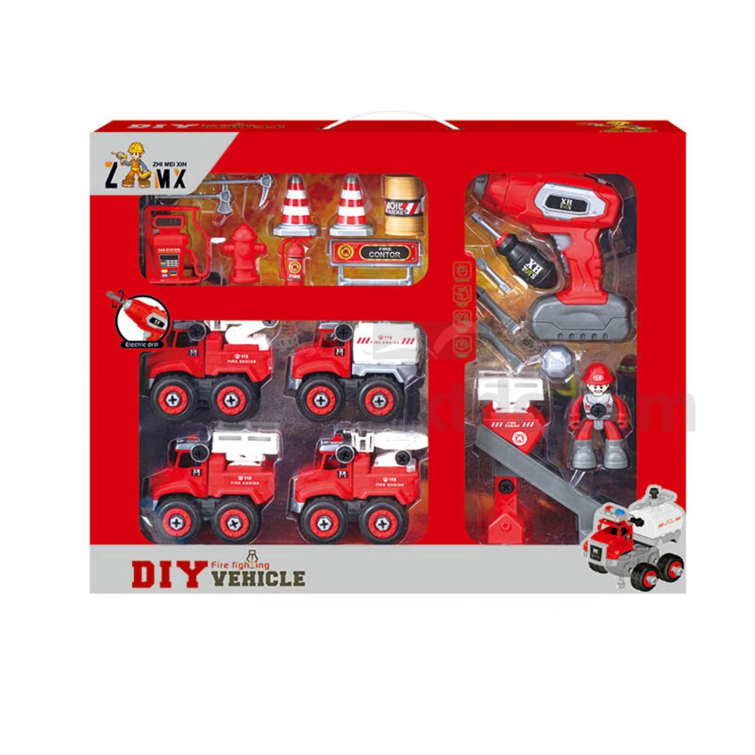 Wholesale plastic fire fighting diy truck toy with electric screw drill