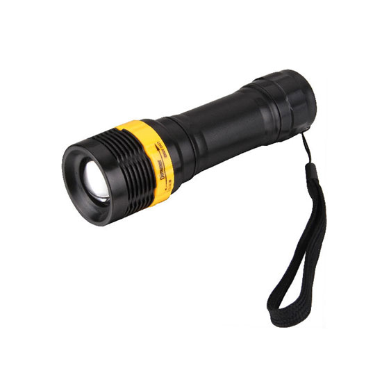 This is an LED flashlight with a stylish and portable design. It is made of quality plastic for durability. The LED light source lowers energy costs and has a long lifespan.