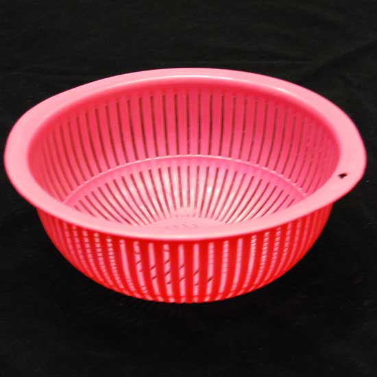 Displayed is a fruit holder in pink. The plastic construction ensures high durability. This plastic fruit holder is suitable for households and restaurants.