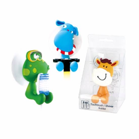 This is a collection of plastic toy holders for household items such as tooth brush. These plastic holders are designed with funny faces of toy animals such as baby cow and frog. Assorted colour and design are available. They are ideal for home decoration.