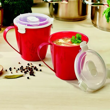 Plastic MICROWAVE SOUP MUG food containers with lids