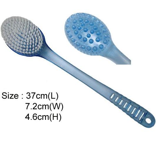 Massage your neck and back effortlessly with this plastic massager brush. It has an oval-shaped brush head with soft nylon bristles for cleaning and has soft massager tips at the back of the brush head. This plastic massager brush offers relaxing massagers and is perfect for using in the bath.