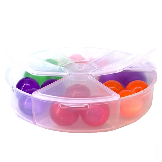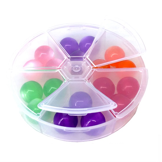 • Features: Round shape; round shaped; box; container; gift box; candy box; candy container; transparent; clear; rigid plastic packaging container; food grade; reusable; recyclable; with hinged l id; with 6 compartments; partitions
