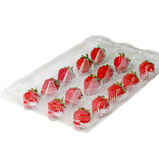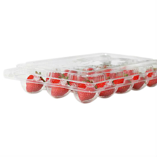 This strawberry packing box is constructed in a rectangular upright structure for a space-saving design. Made of plastic material, this box flaunts a hardwearing structure and a long service life. It offers the products protection from dust, dirt, moisture and scratching.