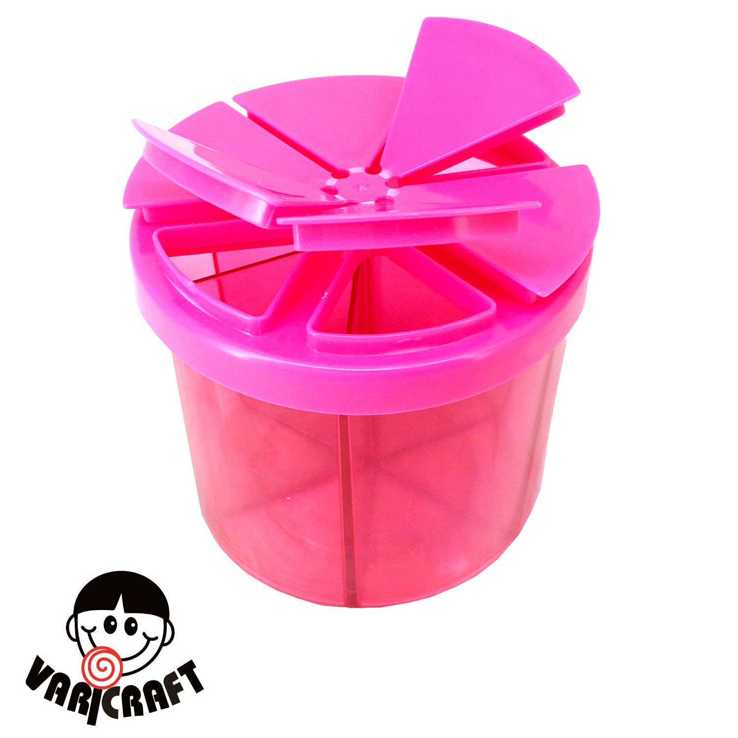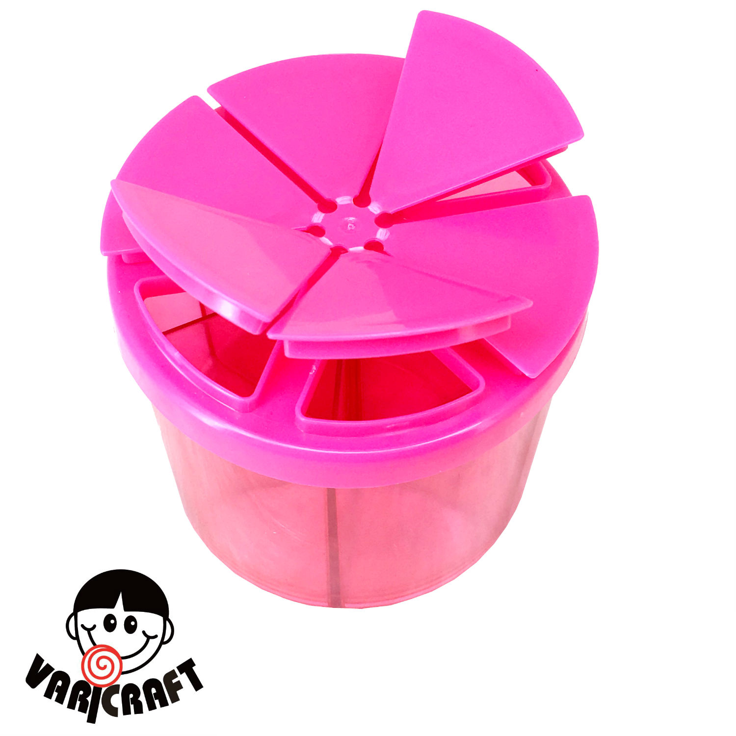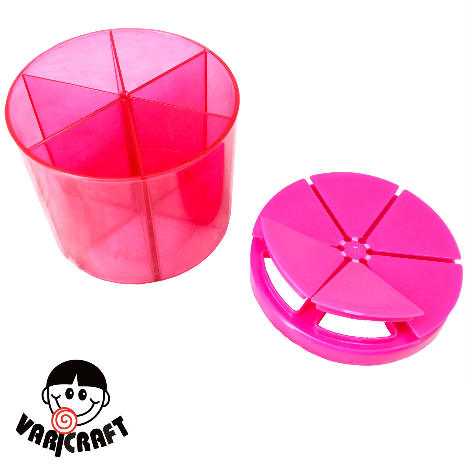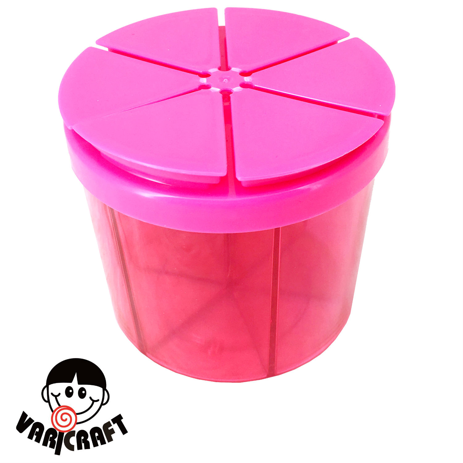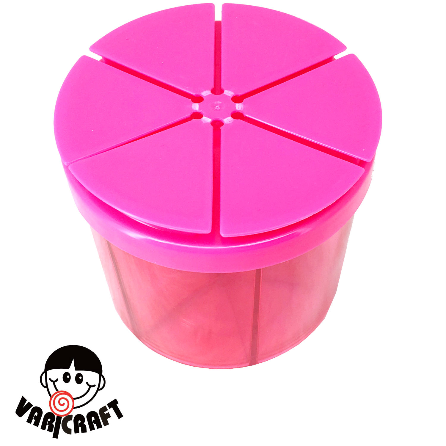 • Features : Crystal Clear; fillable; 6 cells; 6 individual lids