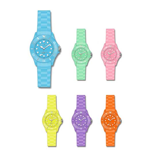 This fashionable plastic quartz watch features a smart, eye-catching design. The round bezel and oyster style silicone band lend modern, sophisticated charm to this timepiece. Designs in various Pantone colors are available.