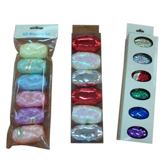 These ribbons come in laser, metallic and iridescent and glossy plained effect. They are essential accessories to enhance outlook of your gift. There are ribbons in six different colors packed in each gift wrapping set.