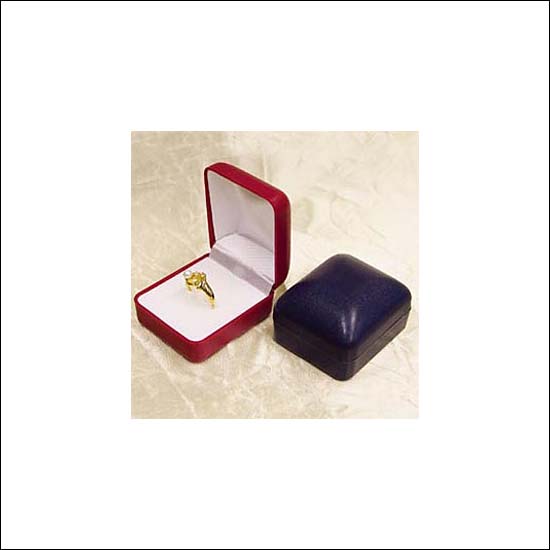 This plastic box comes in a rectangular design and is suitable for ring use. It has suede card inside the top part and has a suede insert for holding the ring. The ring box can securely hold the ring in place and offers good protection to the ring.