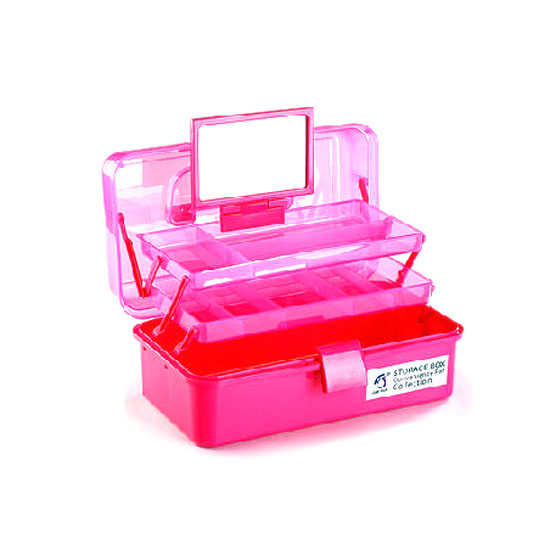 This is a plastic storage box that is meticulously designed to keep your cosmetic items. It is equipped with an inner mirror for added utility. This plastic storage box has an extra-long service life.