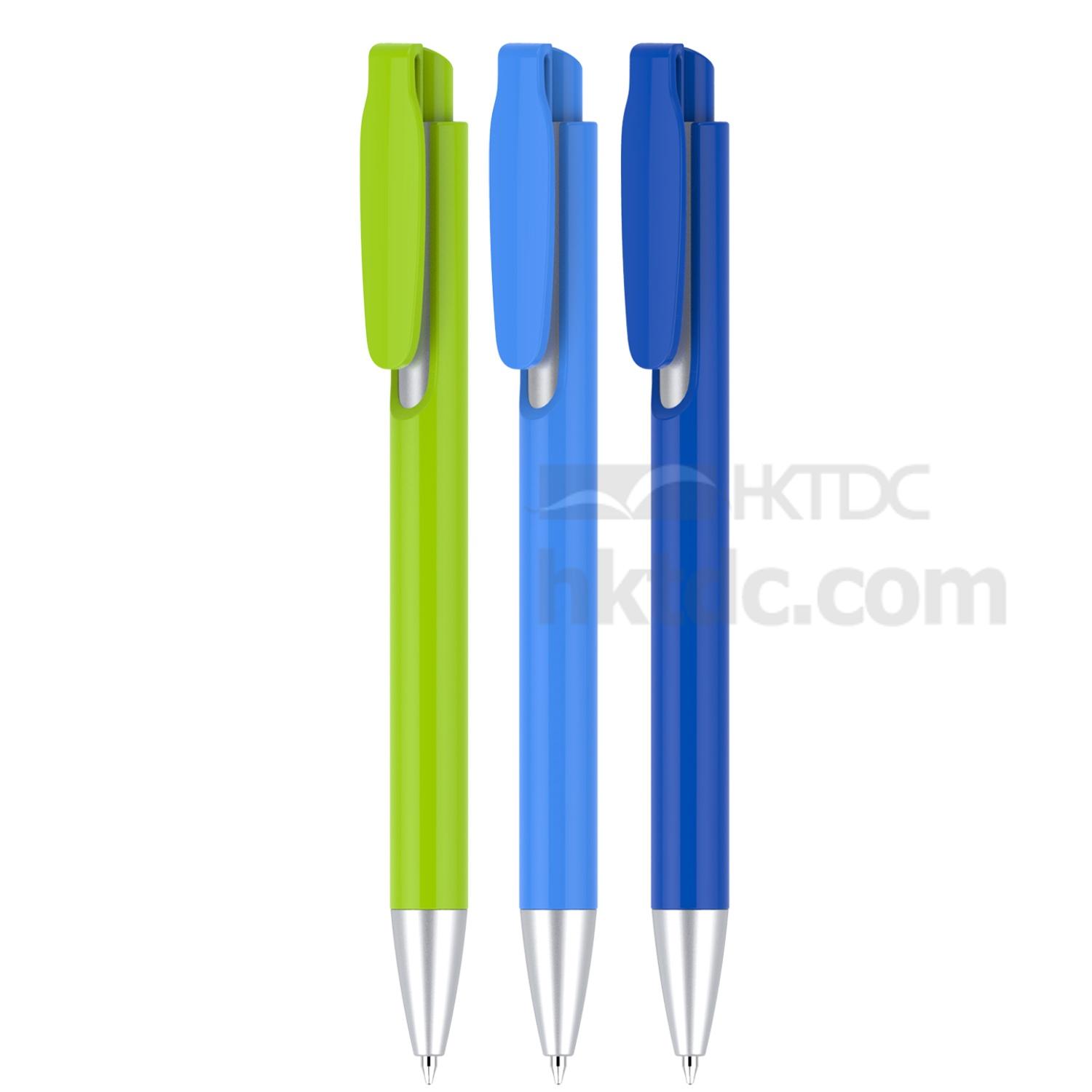 This ball pen has a smooth round barrel made of plastic and has a retractable pen nib for writing. It provides a firm and comfortable grip and is convenient to write with. The plastic ball pen has a pocket clip for carrying and is suitable for school, work and other writing needs.