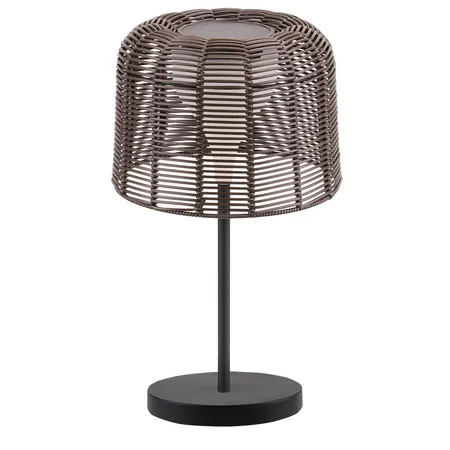 Plastic Brown Rattan lampshade with opal white diffuser, sandy Black metal base with Solar Module V4.