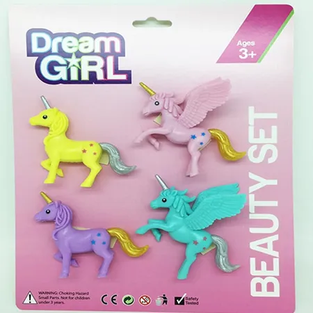 plastic unicorn figure, WE HAVE 4 STYLE ; on blister card, you can select for bulk pack . , you can also for white color for paint animal