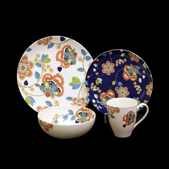 This is an attractive tableware set including one bowl, one cup and two plates. All the pieces are made of high-quality porcelain for added durability. This set will catch your attention easily with its delicate floral patterns in bright colors.
