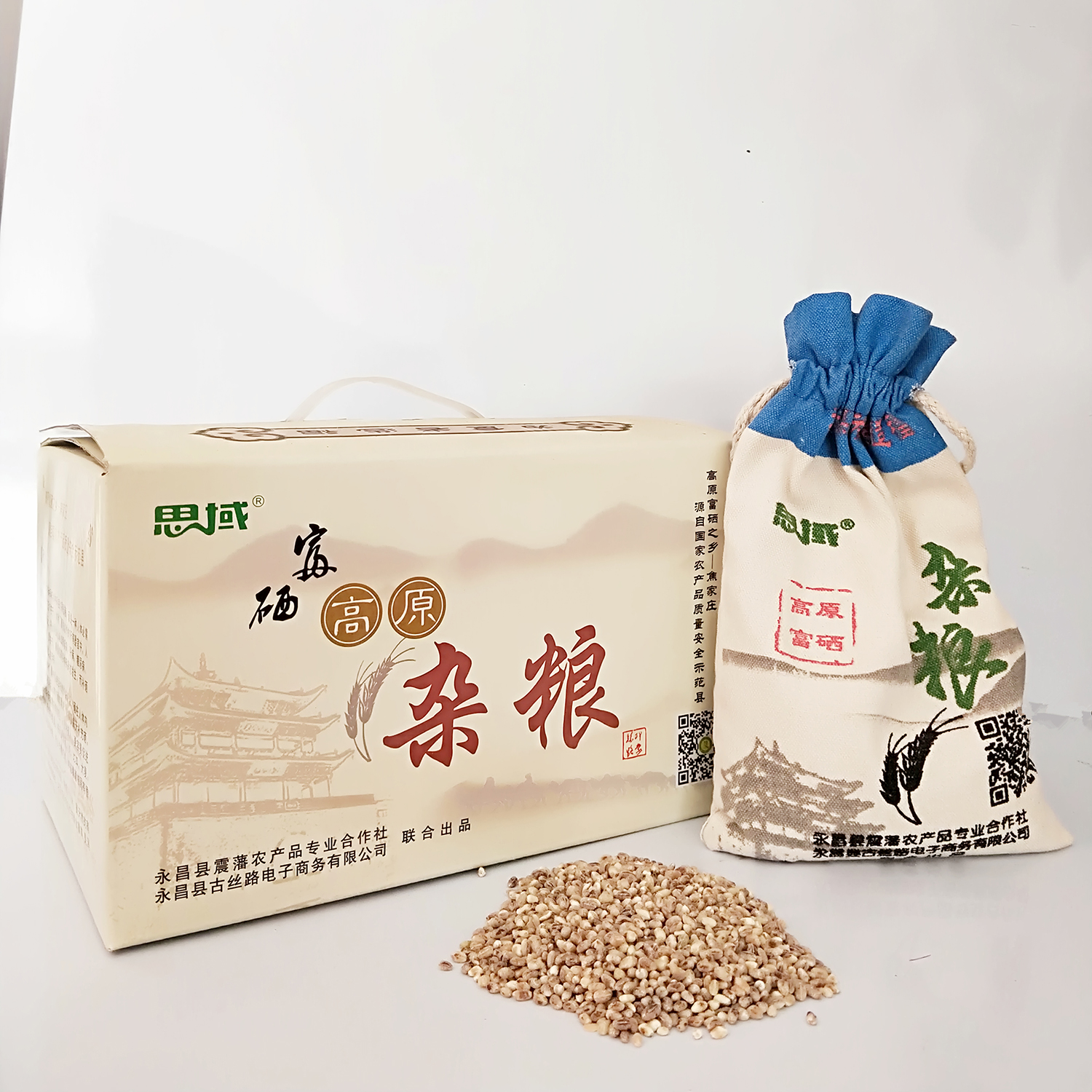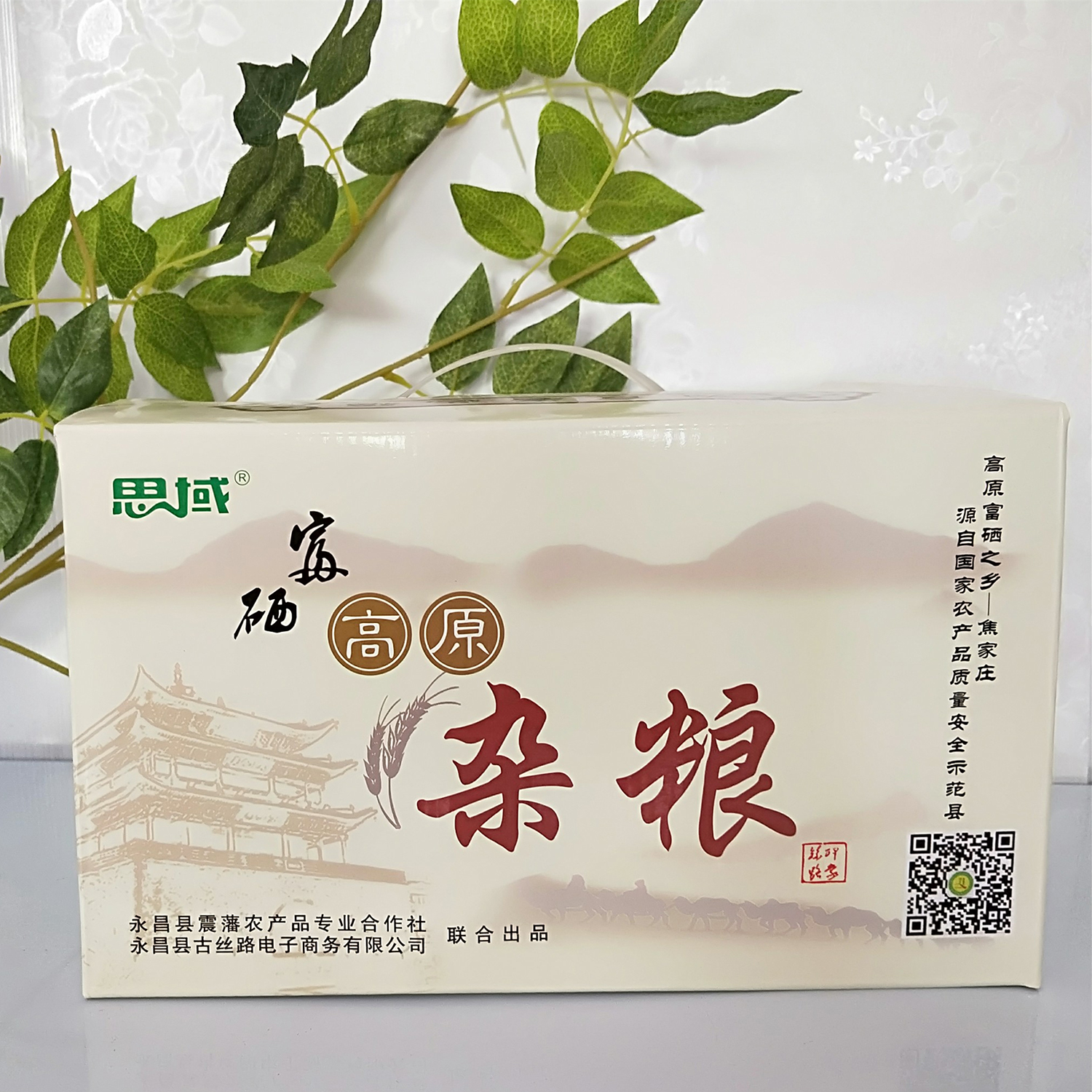 The plateau rich in selenium miscellaneous grains is selected from the plateau high-quality selenium-rich black barley, black wheat, purple barley, black beans, lentils, and another plateau black selenium-rich agricultural products. Through the simple traditional stone grinding process, the black Mairen, black wheat kernel, black barley grits, purple barley grits, etc., have met the needs of consumers and adapted to the trend of the times of coarse grains and healthy health. At the same time, a variety of trace elements needed by the body have been added. The high plateau is rich in selenium miscellaneous grains for people's future three meals a day to "eat black and black, health and longevity" added new hope, injected more vitality. Each box 3000 grams, there are 6 small bags, each bag 500 grams.